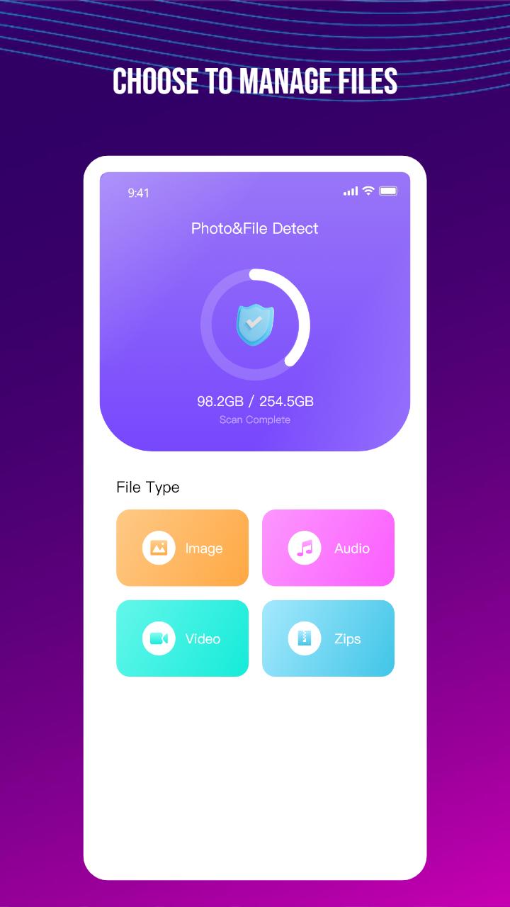 "Discover a seamless file management experience with our innovative app. Effortlessly scan, categorize, and organize your photos, videos, documents, and audio files. Stay in control of your digital life with ease."