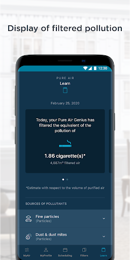 - Wizualizuj filtrowane zanieczyszczenie: Bądź poinformowany o ilości zanieczyszczenia przefiltrowanego przez oczyszczacze.Drobne cząsteczki zostaną przetłumaczone na ich odpowiednik w papierosach i toksycznych gazach na produkty gospodarstwa domowego.