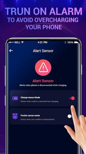 Gdy ktoś wyrzuca lub tracisz telefon komórkowy z ładowarki podczas ładowania niż aplikacja do ładowania baterii, ostrzega Cię za pomocą pięknych dzwonków o niskiej baterii mobilnej.