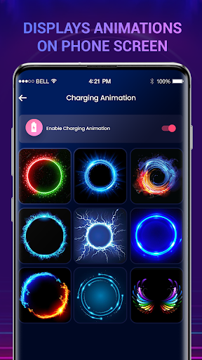 Aplikacja animacji ładowania jest jedną z najlepszych ładowania baterii, pomoże ci pokazać procent ładowania baterii za pomocą pięknych efektów motywu animacji ładowania, oprócz pięknych dźwięków alarmowych, które będzie Ostrzegaj cię przed niskim i pełnym ładowaniem baterii.