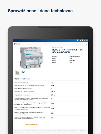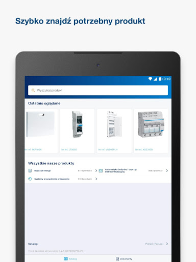 Na smartfonach i tabletach aplikacja Hager e-katalog zapewnia Ci codzienne wsparcie w postaci: