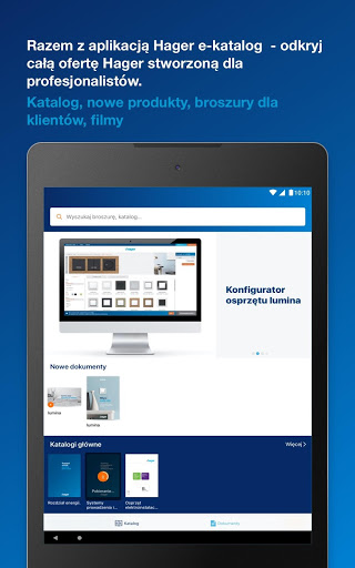 W aplikacji firmy Hager, sprawdź materiały stworzone na potrzeby profesjonalistów, takie jak: katalog produktów, ceny, dokumentację techniczną, instrukcje obsługi, broszury techniczne i informacyjne, czy filmy.