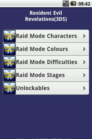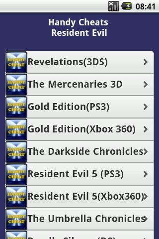 Already Update Ad format to compliance with google Play Developer program PolicyHandy Cheats : Resident Evil All Series Cheats FreeFeatures of the application include:Collections of Cheats and Codes for Resident Evil all series as belowResident Evil RevelationsResident Evil: The Mercenaries 3DResident Evil 5: Gold EditionResident Evil: The Darkside ChroniclesResident Evil 5Resident Evil: The Umbrella ChroniclesResident Evil: Deadly SilenceResident Evil 4Resident Evil Outbreak File 2Resident Evil OutbreakResident Evil: Dead AimResident Evil ZeroResident Evil GameCube remakeResident Evil Survivor 2 Code: VeronicaResident Evil GaidenResident Evil Code: VeronicaResident Evil SurvivorResident Evil 3: NemesisResident Evil 2Resident Evil: Director39;s CutResident EvilAnd add others in next version.Credits and SourcesCheats and Useful Information from many site of free cheats :http:www.pokeamph.comhttp:www.gamefaqs.comhttp:www.ign.comhttp:www.cheatcc.comhttp:www.wikia.comWikiahttp:strategywiki.orgwikiMainPageLegal Notice:This guide is unofficial and is not authorized or created by the creator of the video game for which this guide was made for. This application complies with US Copyright law guidelines of quot;fair usequot;. If you feel there is a direct copyright or trademark violation that doesn39;t follow within the quot;fair usequot; guidelines, please contact us directly at choochai.poo@gmail.com to discuss.