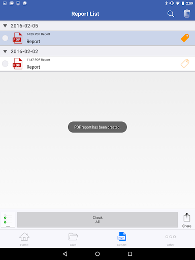 - Utwórz raporty PDF: Możesz utworzyć raporty PDF z różnych danych pomiarowych i zdjęć. (Wymaga dostępu do Internetu)