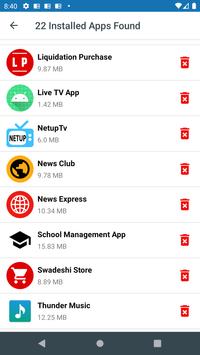 Unwanted scanner & Uninstaller is a simple app that scans your device and retrieves the list of all installed apps in your device. Just in one click it will provide the entire list of applications that are installed in your phone. It also has an option to uninstall or clean the application from device.