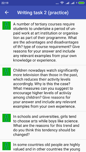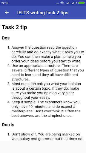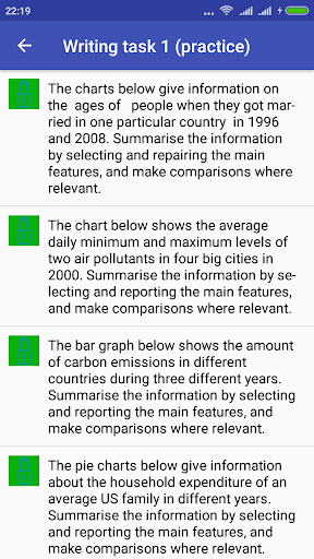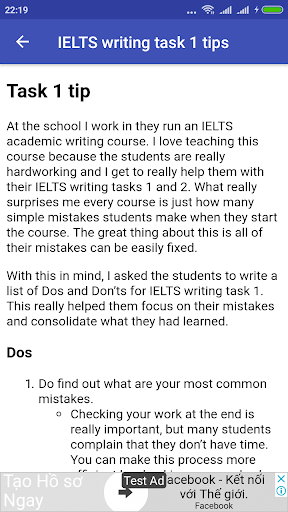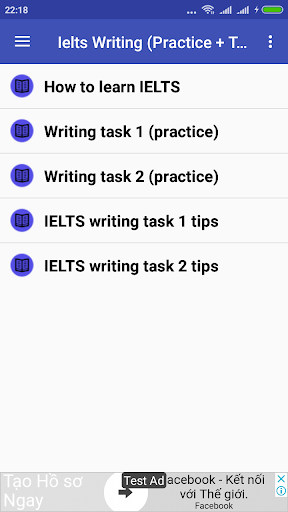 IELTS Pisanie (praktyka IELTS Pisanie Wskazówki) Aplikacja, w tym 1 główne części stojące dla typowej umiejętności: