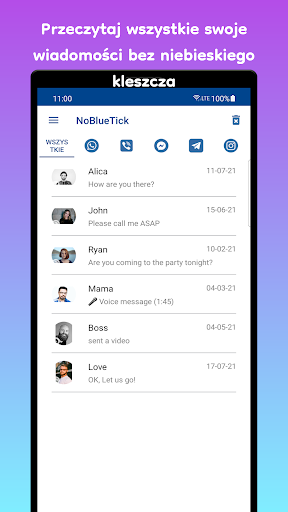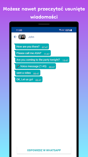 Wszystkie usunięte wiadomości z WhatsApp, Messenger, Viber itd. Są zapisywane w NoBluetick, umożliwiając potajemnie uzyskać ważne wiadomości.