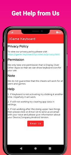 Ta aplikacja zawiera przycisk „Aktywuj klawiaturę” który aktywuje ikonę, która wyświetli się na ekranie. > ⦁ Łatwa w użyciu: Klawiatura igame jest bardzo łatwa w użyciu Klawiatura ma przycisk pomocy, aby jeśli masz jakikolwiek problem, możesz uzyskać pomoc. Możesz również skontaktować się z nami, jeśli podane kroki nie działają.