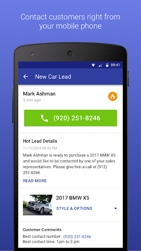 Call and email customers right from the app to schedule a visit to the dealership or collect more information.