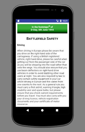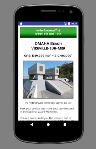 Obejmuje działania D-Day, 6 czerwca 1944 r., Kiedy grupa Allied 21st Army weszoruje, aby rozpocząć wyzwolenie okupowanej Europy spod jekórek Hitlera Nazistowski Niemcy. Przepisuje Cię wokół głównych lokalizacji dotyczących bitwy za pomocą współrzędnych GPS i zawiera narrację dla każdej witryny, która opowiada historię o doniosłych wydarzeniach, które miały miejsce. W przypadku gdy istotne historie żołnierza zostały uwzględnione, aby pomóc w doprowadzeniu wizyty w życiu.