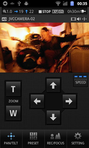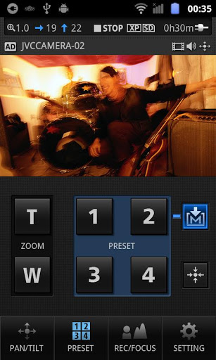 This Application software enables you to enjoy camera operations such as Recording START/STOP, PAN/TILT/ZOOM controls and changing the manual camera settings. In Addition, you can save four PAN/TILT/ZOOM positions as presets and call them.