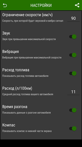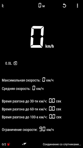 • Измеритель разгона автомобиля. Вы можете измерить время разгона до 30, 60 или 100 км/ч.