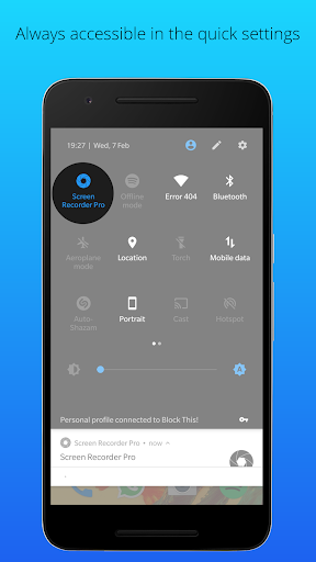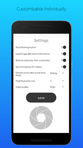 czasy się skończyły, gdzie trzeba było wywołać skomplikowane kombinacje kluczy tylko po to, aby zrobić zrzut ekranu lub wideo ekranu. Dzięki Screenshot Pro możesz wziąć zrzuty ekranu i filmy z ekranem za pomocą jednego kliknięcia, udostępnij je za pomocą dowolnej aplikacji lub go przyciąć. Screenshot Pro jest prowadzony do paska powiadomienia, gdy zostanie uruchomiony. Oznacza to, że jest zawsze i wszędzie dostępny, bez względu na to, na jakich ekranach jesteś. Możesz także dodać pływający przycisk, aby jeszcze szybciej udostępnić. Klikając przycisk lub powiadomienie, możesz natychmiastowe zrobienie zrzutów ekranu lub ekranów ekranowych. Wszystkie zrzuty ekranu i filmy są przechowywane w galerii.