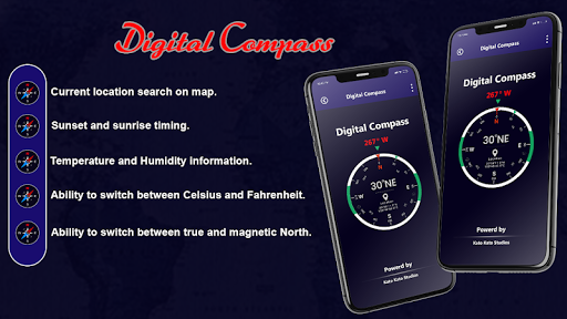 • This Digital compass app works using compass sensor of phone.