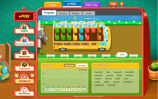Parents can use the daily and weekly progress reports created by e-POLY to conveniently monitor and guide their child’s learning.