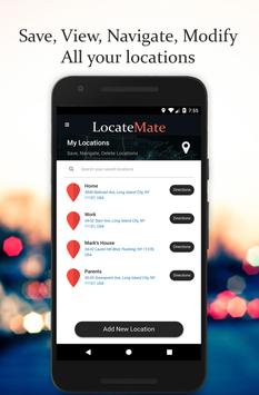 Locate Mate - Location Saver aims to make our lives easier, by introducing it's 5 main features: