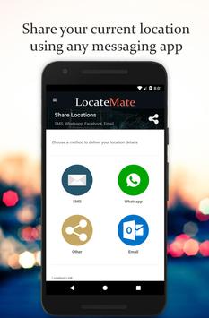 Share Location enables you to share your current location to anyone using any messaging application in your phone ( SMS, Facebook, Skype, Snapchat etc.. ).