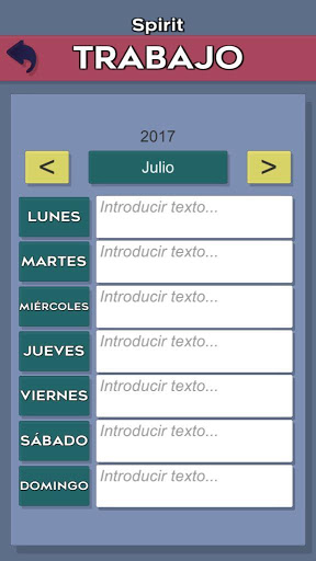 Y en último lugar el trabajo semanal dónde podemos apuntar el trabajo para cada día, acompañado con nuestros objetivos. La