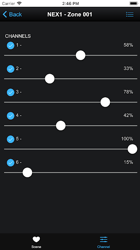 Kontroluj system oświetlenia NEX według urządzeń Android. Ta aplikacja wymaga interfejsu Ethernet do NEX.