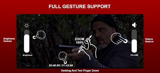 Gesty: Kontroluj gracza za pomocą gestów, tj. Odtwarzanie do przodu/do tyłu, zwiększ/zmniejsz objętość i jasność
