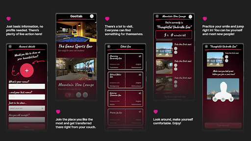 Chcesz poznać nowych ludzi?Wypróbuj Goottah, aplikację społecznościową do nawiązywania kontaktów na całym świecie.„Wyjście do miasta w domu” to aplikacja, aby poznać innych w różnych wirtualnych przestrzeniach z komfortu kanapy.Niezależnie od tego, czy chcesz cieszyć się barem, czy być świadkiem zapierającego dech w piersiach widoku pasm górskich, możesz to wszystko zrobić na naszej platformie!Po prostu wskocz do akcji- tworzenie nowych połączeń nie jest długim procesem.Jeśli chcesz zaprzyjaźnić się lub przejść na randkę online, Goottah oferuje niezapomniane wirtualne wrażenia do połączenia.