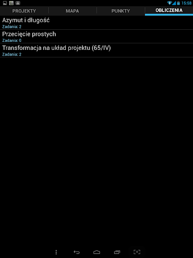 - wykonanie obliczeń: azymut i długość, przecięcie prostych, transformacja międzyukładowa (z dowolnego układu na układ projektu z zastosowaniem korekt globalnych)