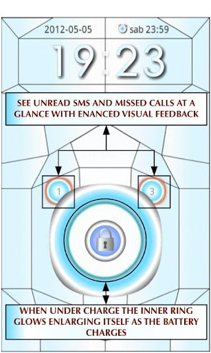 Cały hi-tech pad, zaprojektowany, aby dać wszystkie najważniejsze informacje dotyczące inteligentnego telefonu na pierwszy rzut oka i bez konieczności odblokowania go Takie jak ładowanie baterii, nieprzeczytane wiadomości SMS i nieodebrane połączenia.