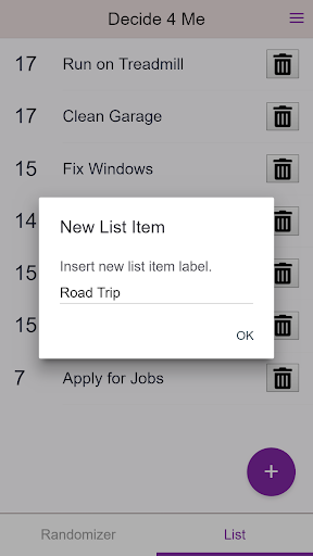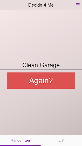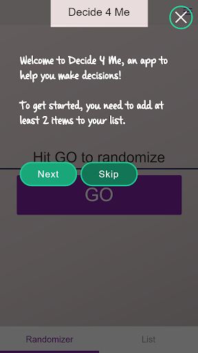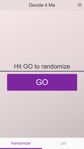 Use this app by building a list of items that you need to decide from then let the app do the rest for you. Push the big button and the app gives you a decision.