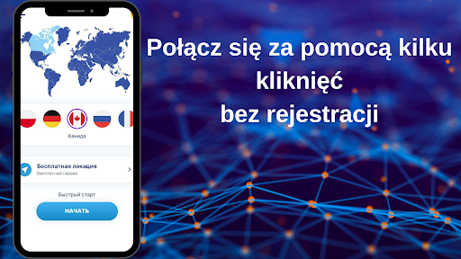 Aplikacja nie zbiera żadnych informacji o Tobie ani Twoich działaniach i nie wymaga rejestracji (VPN bez rejestracji). Bezpłatną funkcjonalność możesz aktywować w kilka sekund. Przejdź do głównego ekranu aplikacji, wybierz serwer Kanada i kliknij przycisk „Połącz”. Gotowy! Teraz jesteś bezpiecznie chroniony i gotowy do nieograniczonej pracy w Internecie.