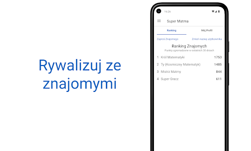 Istnieją również funkcje, które utrzymają motywację podczas grania w tą ekscytującą grę matematyczną! Możesz konkurować z przyjaciółmi, rywalizując z nimi o punkty w rankingach. Możesz zbierać punkty, ćwicząc matematykę.