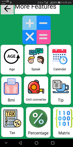 podział, dodawanie, odejmowanie, procent i wybrać pozytywny lub negatywny numer, a teraz możesz także wykonywać obliczenia naukowe.