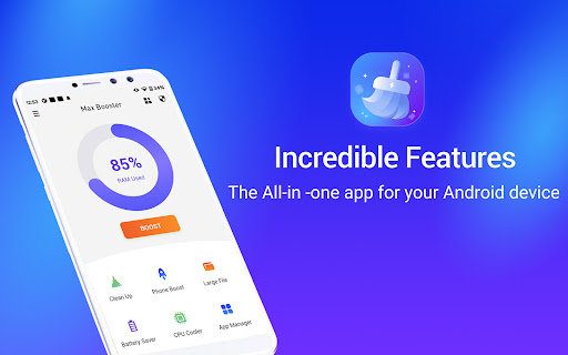 Max Booster's user interface is simple and intuitive, making it user-friendly and easy to clean cache and junk files to free up your phone's RAM.