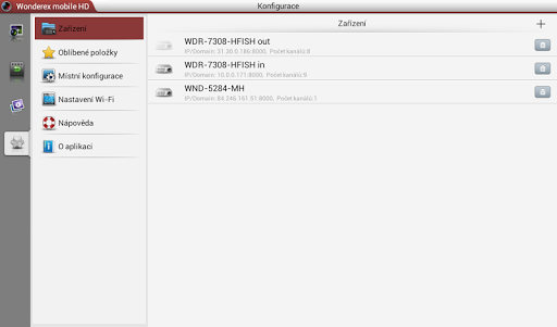WONDEREX mobile HD je mobilní klientský software určený pro tablety, který je založen na OS Android, používá se k dálkovému sledování živého videa z DVR, DVS, HVR, NVR a síťových kamer.