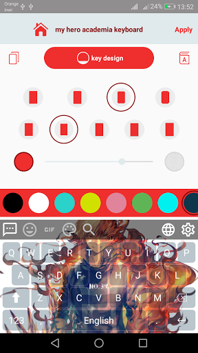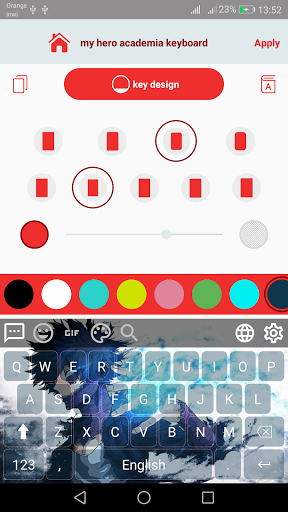 My Hero Academia Keyboard będzie wyglądać niesamowicie na klawiaturze i będziesz miał wspaniały widok za każdym razem, gdy wpisujesz wiadomość i wysyłając zabawę Emojis!Twoja klawiatura będzie wyglądać tak modowatym, gdy zainstalowałeś ten atak na zainstalowany tytan klawiatury i wszyscy zazdrości Twoje nowy wygląd telefonu.?