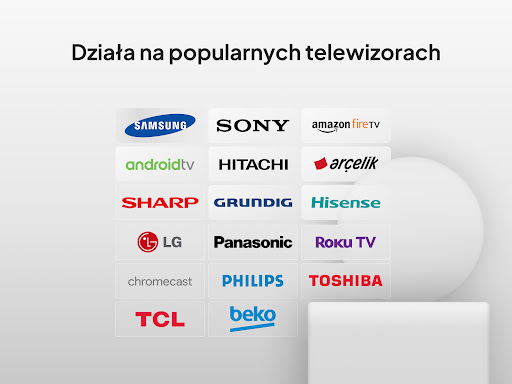 Działa na każdym TV: Wspiera wszystkie popularne marki telewizorów na świecie.