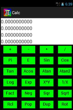 Simple scientific calculator using reverse polish notation. Offers logarithm, exponential, trigonometric, and general arithmetic functions.