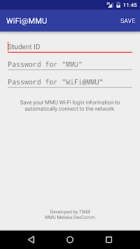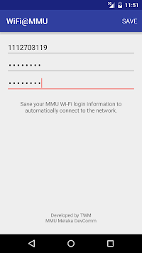The application is created to help students from Multimedia University (MMU) to connect to the campus WiFi network. It automatically logins to the WiFi networks "MMU" & "WiFi@MMU" using the student's ID and WiFi passwords.