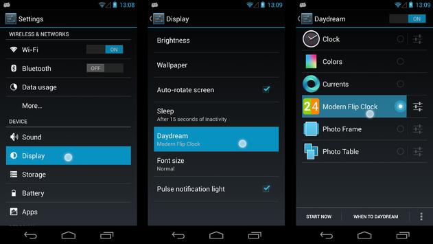 zegar, flip, flap, holo, kolor, kolory, daydream, pełny ekran, nowoczesny, klapki, klapkowy, prosty, pogrubiony, polski, nocny, dock, biurko, czas, podstawka, stacja dokująca, baza dokująca, day dream