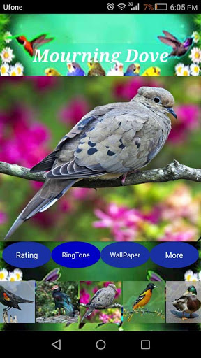 Simply select the bird picture from scroll able gallery to see its bigger form. Now tap above image window once again to listen currently selected bird sound.