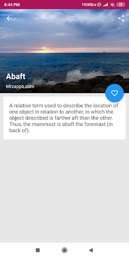 It includes a great interface, in addition to the search you can perform, you can share these maritime terms with whoever you want, this application is perfect for those who are looking for a dictionary or a glossary of terminology to learn, study and others.