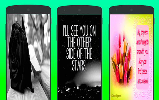 Utrata specjalnej osoby nigdy nie jest przezwyciężona, jest to ból, którego nauczył się żyć z nim, a dzielenie się obrazami z dedykacją lub wspomnieniami wobec nich pomaga utrzymać swoje wspomnienia żywe w innych ludziach, którzy mieszkali z nimi. W tej aplikacji znajdziesz obrazy z opóźnionymi zwrotami, aby wysłać swoje kondolencje do osoby, która miała utratę śmierci, także zwroty bólu, aby stracić ukochaną jedną.