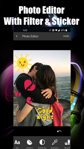 : Aplikacja fotograficzna Pokaz slajdów przez Ciebie może wykonać pokaz slajdów z telefonu komórkowego, daje sekundę, z czasem slajdów, ramek i kanałów, powierzchni lub dodawania nowych i różnych efektów naklejki.