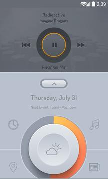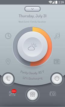 This bold homescreen theme features a smooth gray, orange and red color scheme. With a quick glance you can see the current weather conditions (with temperature), your battery percentage, and missed indicators for phone, text messages, and email. A tap of the top button reveals a music player with artist and track name. Everything needed to make this theme function is included.