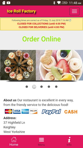 Once downloaded it will enable you to order food from our extensive menu.