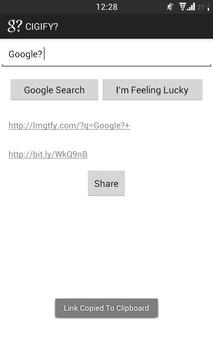 The app automatically copies the bit.ly link to the clipboard and you can also share the link via SMS, Facebook, Gmail, Google Plus, or Twitter easily using the share button.