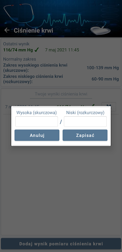 - Monitorowanie wyników pomiarów ciśnienia krwi według daty