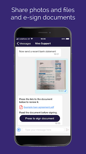 Nivo to bezpieczna aplikacja do przesyłania wiadomości, która pozwala wysyłać i odbierać wiadomości, zdjęcia, filmy i pliki od dostawców usług, takich jak pożyczkodawcy, banki, społeczeństwa budowlane, kas kredytowa i firmy profesjonalne.są weryfikowane, aby zawsze być pewni, że to na pewno są wysyłane wiadomości, a nie oszust.