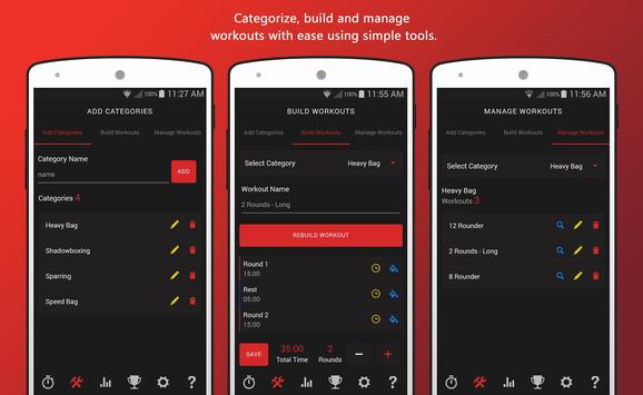 - Build flexible workouts using the round & rest format with every interval being editable.