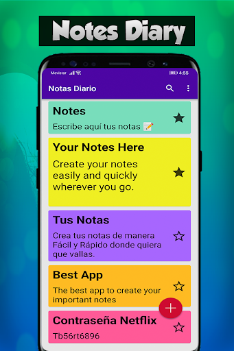 Notes Diary App It has for you an application that shows you all its contents in an easy and fast way, save all your work and activities and add to each note a color and distinguish them by colors easily capture everything that goes through your mind as well as any data important that you want to save, Your best option to save your Notes Diary App