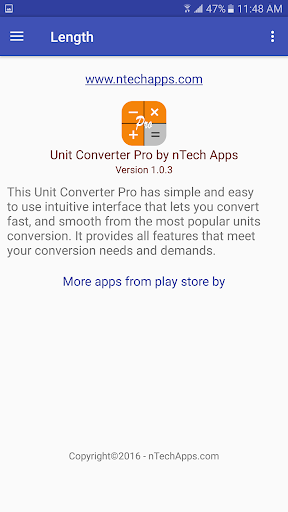 This Unit Converter Pro has simple and easy to use intuitive interface that lets you convert fast, and smooth from the most popular units conversion. It provides all features that meet your conversion needs and demands.